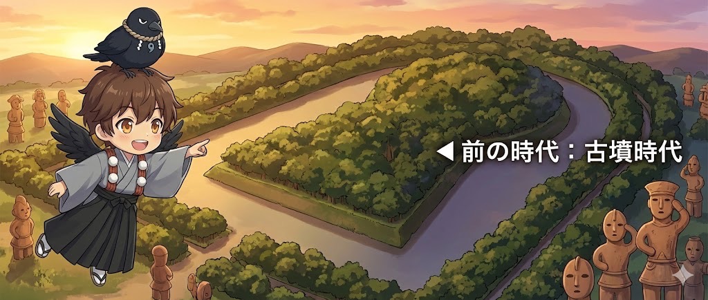 ひこまるひこまる:「巨大なお墓(古墳)を作って権力を見せつける時代が終わったら、次はどうやって国をまとめていくの?」