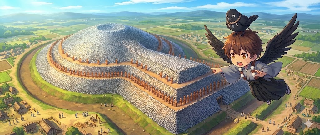 「良い質問じゃ!古墳は単なるお墓ではなく、『ワシはこんなにでかい墓を作れるくらい、たくさんの人を動かせるスゴイ奴なんだぞ!』という、権力のアピール(可視化)じゃったんじゃ。」